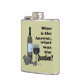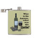 The flask itself is fine. It’s a cheap flask, obviously bought in bulk, however am prepared to overlook that. Given that it is a personalized item, I would have liked to have seen gift boxing instead of the generic packaging. Terrible printing, and/or quality. It’s a cheap, tacky vinyl. It is not cut straight and is also applied in a way that it is overhanging the bottom, causing the glue to catch on items and it will eventually roll and tear, damaging the wrap.