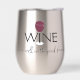 Designed with type, the ‘I” in WINE is the stem of the wine glass. This tumbler is available in “Stainless Steel”, show here and white.