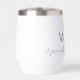 Designed with type, the ‘I” in WINE is the stem of the wine glass. This tumbler is available in “White”, show here and Stainless Steel.