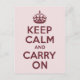 Wine red "Keep Calm and Carry On" design on a pale pink that coordinates.