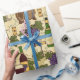 The perfect wrapping paper for wine lovers, featuring wine bottles and glasses, wine barrels and bunches of grapes
