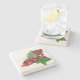 The coasters are gorgeous, a quality feel and heavy weight. They look like a precious archeological find. A rustic stone juxtaposed with a modern floral black and white print. I like the way the print goes slightly imperfect on the cut stone edges giving them a kind-of natural beauty.