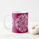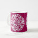 This white mandala sits on a dark pink-red background. The colour is very rich and sophisticated. Part of the Kylgh Mandala Collection.