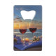 Sipping wine at the beach during sunset, with the ocean as a backdrop, surrounded by flowers and candles. A stylish, portable bottle opener that fits perfectly in your wallet or purse.