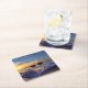 Beautiful, romantic coasters hold two wine glasses on a beach, with the sea stretching out in the background. Candles and flowers adorn a rustic table, adding to the enchanting scene.