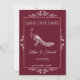 Personalise a unique wedding announcement with an Wine Peacock Flourish Save the Date. Announcement design features an elegant peacock adorned with flourishes. Additional save the date announcement available for this design in a variety of colours.