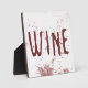 Wine decorative text or word of dark red or burgundy colour and dark red splatters and blots imitating the wine stains. Prints and gifts for fun and good mood. Square format products and souvenirs.