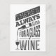 “There is always time for a class of wine”. See my store for more wine lovers’ items.