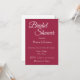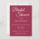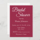 Simple style, bridal shower invitation that features a trendy, wine red colour background along with the future bride's name and party event time and location, contact, etc., printed in white, stylised lettering. Personalise your invitation by replacing text with your own bridal shower information. Select your invitation paper style and quantity.