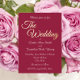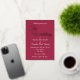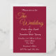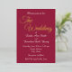 Simple style wedding invitation on a trendy, wine red colour background with "The Wedding" printed in stylised script with foil colour of your choice. Edit name, date, location, etc., with your own information printed in white lettering. Designed to coordinate with our Wine Red Simple Style Wedding collection.