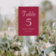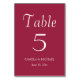 Wine Red Simple Style Wedding Table Number