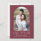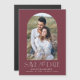Announce your wedding date in style with our modern photo save the date magnet. The simple save the date magnet features your engagement photo inside of a wine-coloured arch frame. "Save the Date" is displayed in white modern serif and script fonts. Personalise the save the date photo magnet by adding your names, wedding date, and wedding location.