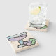 The coasters are gorgeous, a quality feel and heavy weight. They look like a precious archeological find. A rustic stone juxtaposed with a modern floral black and white print. I like the way the print goes slightly imperfect on the cut stone edges giving them a kind-of natural beauty.