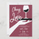 A modern, elegant and chic couple's shower invitation with a wine tasting theme. It features retro vintage inspired illustration of a hand holding a tray with a wine glass and the title "Cheers to Love" in a playful modern script.. A chic wine tasting wedding shower invitation for a modern couple who loves wine and the winery experience.
