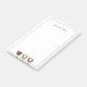 Three glasses of wine in red, pink, and white at the bottom with your custom text at the top make this an elegant note pad for your wine tasting notes or for any wine business or event. Edit the text at top to your own name or message, or delete it if unneeded. A black border around the edge anchors the glasses artwork.