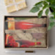 Wine themed tissue paper with image of bottle corks and bottles of wine, cheese and grapes.