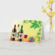 A great combination is wine with grapes. The perfect way to relax and unwind with a nice glass of wine and some grapes. This design is a lovely scene of three bottles of wine, a full wine glass and a grape vine. This wine with grapes design looks great on these greeting cards