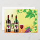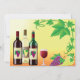 A great combination is wine with grapes. The perfect way to relax and unwind with a nice glass of wine and some grapes. This design is a lovely scene of three bottles of wine, a full wine glass and a grape vine. This wine with grapes design looks great on these invitations