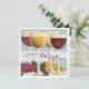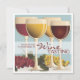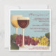 Beautifully hand-drawn wineglasses of a variety of red and white wines are nestled among luscious grape clusters and make the perfect design for a wine tasting party. The wine glasses are delicately shaded and hold delicious selections just waiting to be tasted as as ripe red and white grapes spill out across a soft teal blue background. Offered here on the basic paper stock, this design would also look especially wonderful on linen or felt. Coordinatting postage stamps are also available.