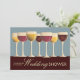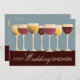 Beautifully hand-drawn wineglasses in a variety of red and white wines are just waiting for the tasting in this design that is absolutely perfect for a wine themed couples wedding shower. The wine glasses are delicately shaded and rest against an elegant steel blue background. Offered here on the basic paper stock, this design would also look especially wonderful on linen or felt. Coordinatting postage stamps are also available.