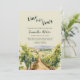 Vino before Wine Winery Bridal Shower invitation features a watercolor winery and mountains design. There's room on the back for the bride and groom's initials on a wine bucket.