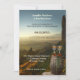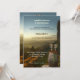 A modern all in one wedding invitation featuring two wine glasses with grapes on wine barrel overlooking a stunning landscape scene. On the back is a QR code template which can be easily customised. You can also replace the back image with your own photo if you like.