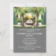 A single rectangular is set on cobblestone pavers and has wooden chairs on each side of it. A sunset is seen in the distance over the vineyards and has turned the sky a pretty orange and yellow colour. The table has a pillar on each side of it and a wooden arch filled with vines, grapes and small shimmering white string lights. To the left and right of the pillars are poplar trees and topiary plants in pots. This beautiful generative content graphic is ideal for Italian summer; Tuscan spring; Cape Town vineyard and Turkish winery rehearsal dinner parties. Personalise the white editable templates and change the medium grey background to any of your choice.