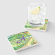 The coasters are gorgeous, a quality feel and heavy weight. They look like a precious archeological find. A rustic stone juxtaposed with a modern floral black and white print. I like the way the print goes slightly imperfect on the cut stone edges giving them a kind-of natural beauty.