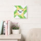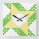 A quilt block pattern in soft colours of green, peach & white has matching numbers to mark each quarter hour. This design is only suitable for the square clocks.