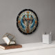 This striking wall clock features an ornate stained glass design of a majestic cross with outstretched wings, symbolising faith and grace. The vibrant array of colours, including blues, whites, and golden accents, creates a powerful and inspiring focal point for any home or sacred space. Edit colour of the clocks numbers in the Design tool to your favored colours.