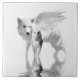 Fantasy art tile of a winged wolf and white owl in the snow. Very pretty and mystical, this is a fun art photography that touches on the magic of ainimals.