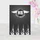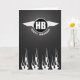 HB in a black silver trimmed circle, Happy Birthday underneath. Silver Flames decorate the bottom of the card. The black is a metallic-like image. A great card for the Motorcycle fan.