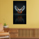 This striking wall art captures the fierce elegance of a bird in flight, its wings spread wide in a powerful display of symmetry and strength. The feathers, painted in vivid tones of fiery orange, cool silver, and deep black, create a mesmerising contrast against the dark background, giving the piece a dramatic, almost ethereal presence. With its mirrored reflection below, the artwork evokes both balance and intensity, symbolising freedom, resilience, and transformation. Perfect for modern interiors, this piece makes a bold statement, drawing the eye and igniting the imagination.