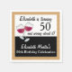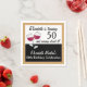 This feminine 50th birthday paper napkin features a graphic of two glasses of red wine and the humous text: (name) is turning 50 and wining about it! The napkin offers customisable text for you to add the name and birthday year of the guest of honour. The background border has a swirl accent over gold which can be customised to any available colour.