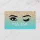 Wink Eye Lashes Eyelash Makeup Artist Teal & Gold Glitter Business Cards.