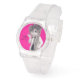 My granddaughter is graduating with her PhD on May 2nd and I can’t wait to give her this beautiful timepiece. Such quality and workmanship. I’m glad I bought the clear because she can wear it with anything. Thanks so much for quality and fast shipping. Excellent. Very bold print