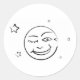 Winking Brushstroke Moon and Stars Classic Round Sticker