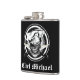 The flask itself is fine. It’s a cheap flask, obviously bought in bulk, however am prepared to overlook that. Given that it is a personalized item, I would have liked to have seen gift boxing instead of the generic packaging. Terrible printing, and/or quality. It’s a cheap, tacky vinyl. It is not cut straight and is also applied in a way that it is overhanging the bottom, causing the glue to catch on items and it will eventually roll and tear, damaging the wrap.