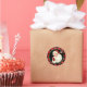 The feature on this fun Holiday sticker is a classic image of Santa Claus. Dressed in his traditional red and white cap, he is holding up one finger and winking. The image is placed on a black background, with a bright Christmas green circle frame. The text in white has your name and address on a red and black buffalo plaid circle border. Kids of all ages will love it!