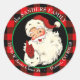 Winking Classic Santa Claus Buffalo Plaid Frame Round Sticker