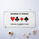 Showcase your wry bridge attitude with a dose of sensible bridge advice with this desk mat featuring the four card suits along with the truism saying "Winning At Bridge Requires A Common System". No need to be an avid bridge player or bridge teacher to enjoy!