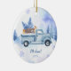 Winter Animal Truck Blue Snowflakes Mountain Ceramic Ornament
