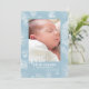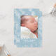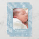 A seasonal birth announcement with a soft-blue background and wintery pine branches and cones. (<a href="https://www.freepik.com/free-photos-vectors/background">Background vector created by rawpixel.com - www.freepik.com</a>). PIX. <br/><br/>The card is easy to customise with your wording, font, font colour, paper shape options and choice of six paper types.<br/><br/>Not exactly what you're looking for? All our products can be custom designed to meet your needs at no extra charge.<br/><br/>Simply contact us at askcottonlamb@gmail.com.<br/><br/>Coordinating products available: Just ask us!"