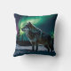 Winter Aurora & Timber Wolf Wildlife Design Cushion