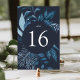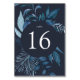 Chic winter botanical table number cards feature a round border of icy blue watercolor foliage on a navy background, surrounding your table number. Design repeats on reverse side. Coordinates with our Winter Azure wedding invitation suite. NOTE: Please customise with table numbers one by one and add to cart individually.