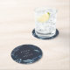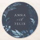Add personalised charm to your wedding cocktail hour or reception with these chic botanical coasters. Design features your names encircled by a wreath of winter watercolor foliage and leaves in icy shades of blue on a navy background. Designed to match our Winter Azure wedding collection.