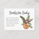 Rustic Christmas theme baby shower books for baby card featuring watercolor illustration of winter botanicals including, mistletoe, pine tree branch, berries, orange, etc. This card can be sent along with your invitation and asks guests to bring a children's book instead of a card. Gender neutral design.