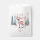 Baby it's cold outside winter themed baby shower thank you favour bag, watercolor cute girl baby deer with a pink scarf and winter hat, snowy pines thank you favour bag for winter girls baby shower