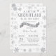 Winter Baby Shower invitation. Grey Snowflake. Boy or Girl Baby Shower Invitation. Winter Holiday Baby Shower Invite. White and Grey Silver Snowflakes. White Background. For further customisation, please click the "Customise it" button and use our design tool to modify this template.