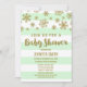Winter Baby Shower Mint Stripes Gold Snowflakes Invitation